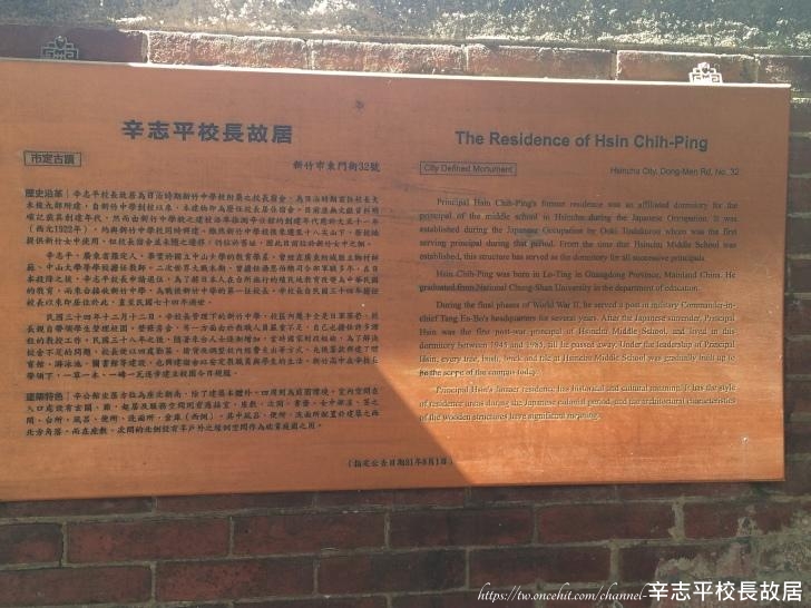 今天是2020/5/13日,來到了辛志平校長故居參觀,在2002年8月1日被定為歷史古蹟,是在新竹市的東區,以前是新竹中學校的校長宿舍,但是是什麼時候建立的呢?目前並無具體的文獻資料有記載,然而新竹中學校推測,是在日治大正11年,也就是西元1922年創建的,大約跟新竹中學校同時興建。